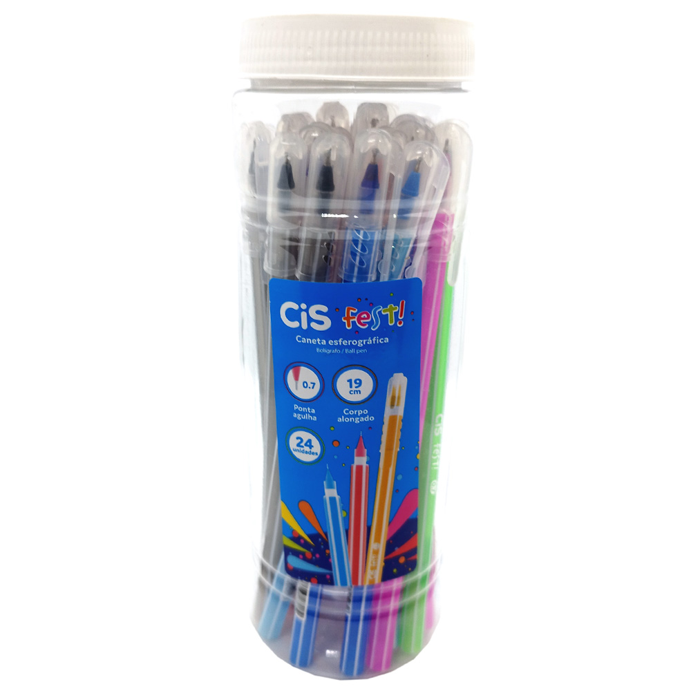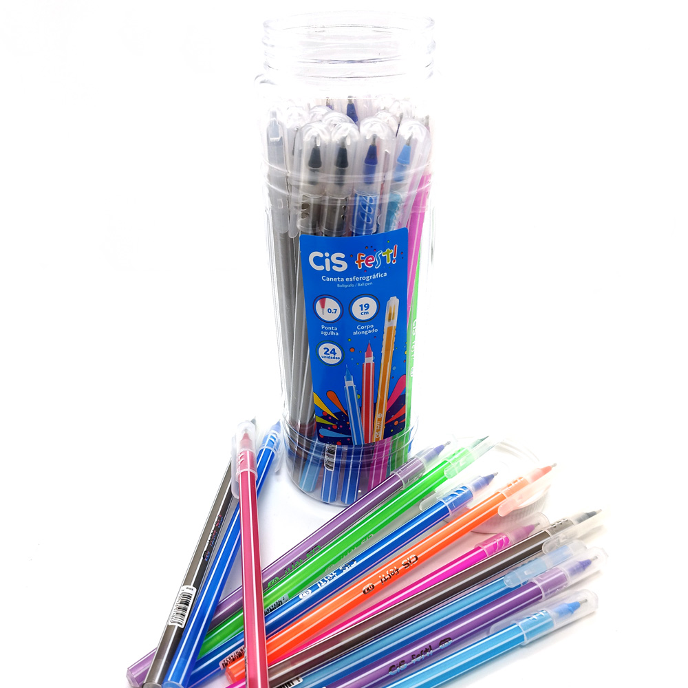 Caneta CiS FEST Colorida Pote – 24 Unidades