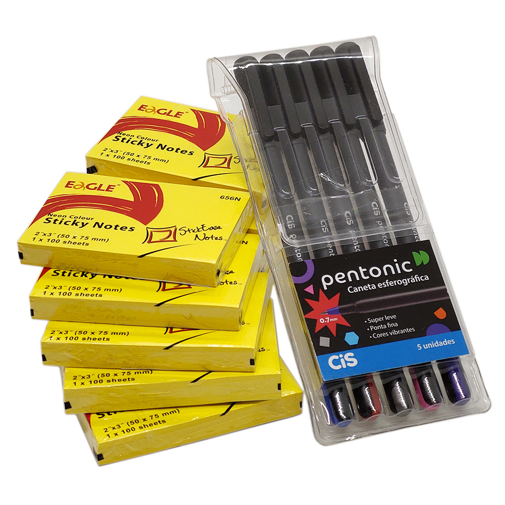 Caneta Pentonic 0.7 CiS 5 Cor + 10 Sticky Notes Eagle 50×75