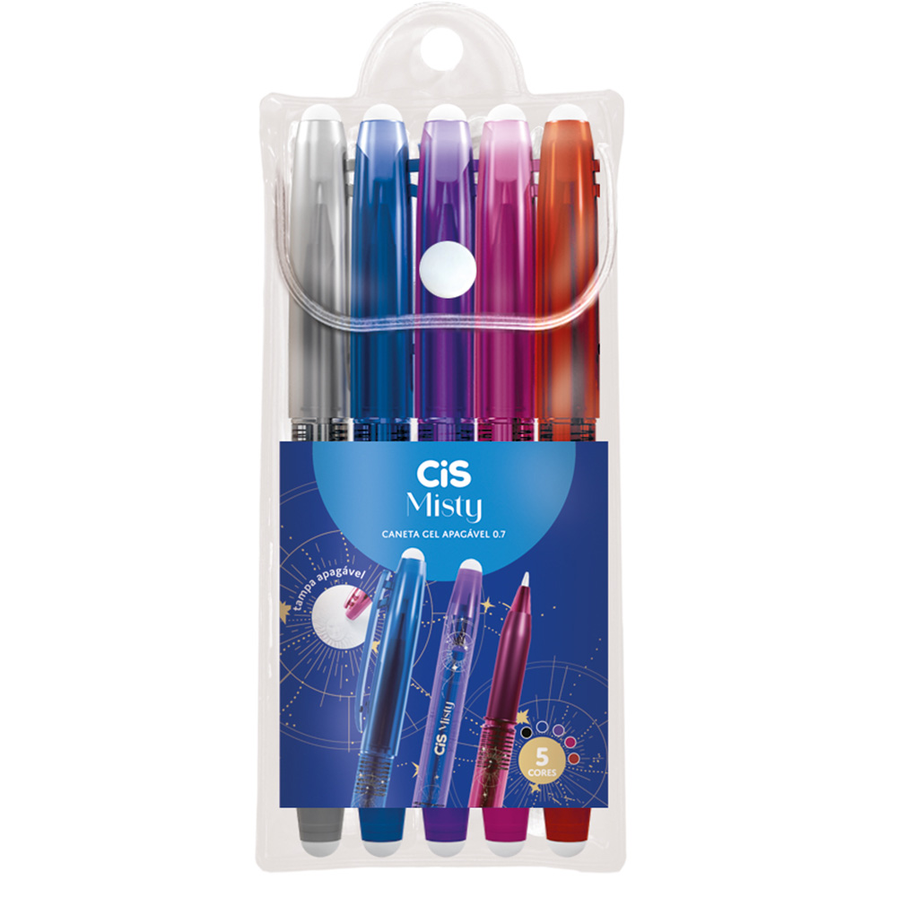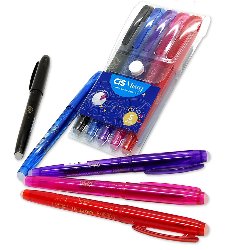 • 5 cores lindas: estojo com canetas gel apagáveis CiS Misty em tons suaves que deixam anotações, estudos e desenhos muito mais divertidos.